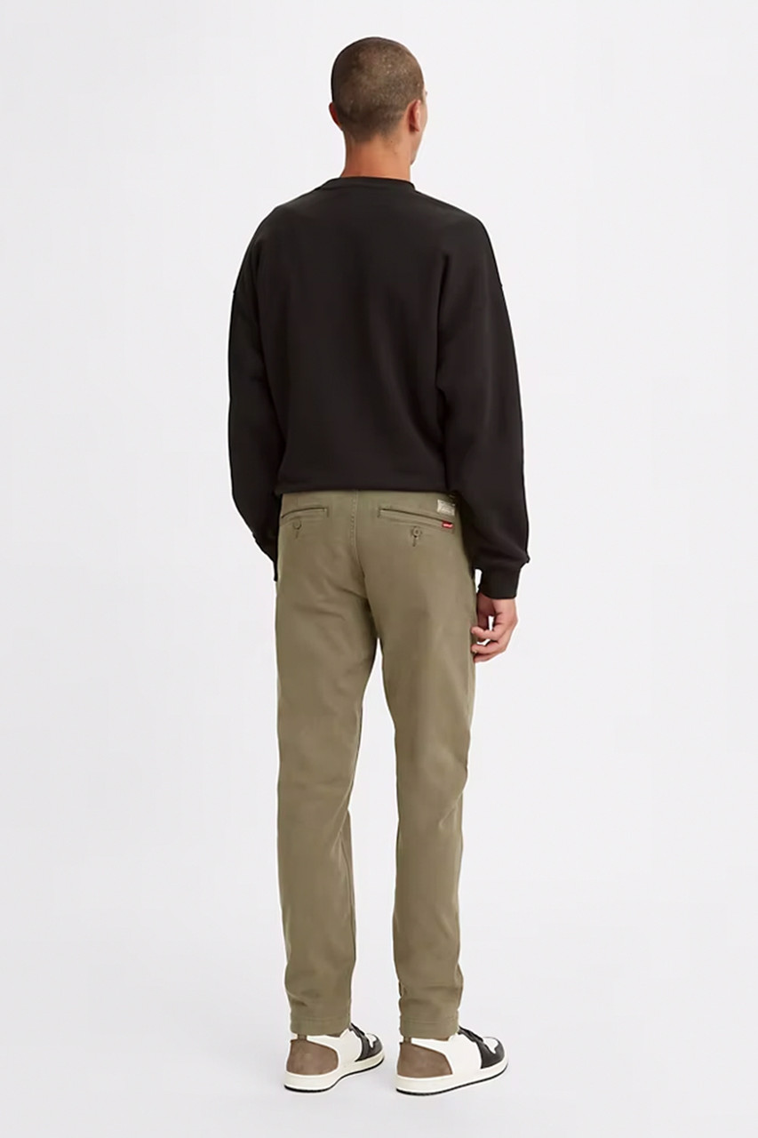Levi’s® XX Chino—don’t call them khakis. They’re softer, with just the right amount of stretch. Slightly roomier than our Slim Taper, they have a little more give but look just as clean and contemporary. This pair is garment-dyed for a better hand-feel and a made-you-look olive green finish. By Levi’s.Â