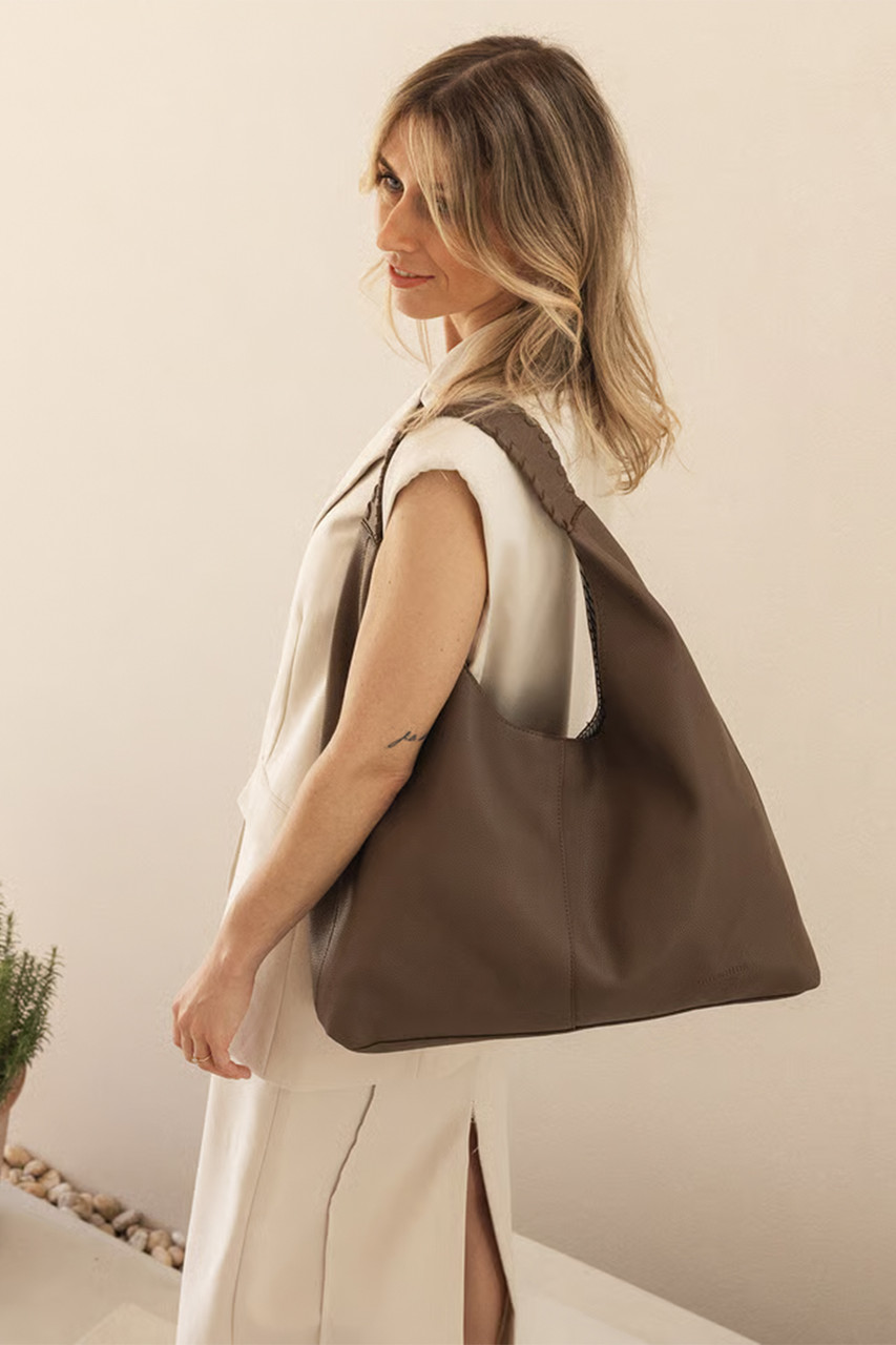 The Louenhide Avery Shoulder Bag is a modern take on the classic hobo bag with an elevated twist. The whipstitch detailing adds depth and texture to the shoulder bags exterior while the slouchy, minimalistic design adds a soft yet sleek element to your capsule wardrobe. The seamless teardrop silhouette sits comfortably over the shoulder, while offering ample interior space to fit your everyday essentials and more. With its timeless blend of structure and softness, elevate your everyday with the Avery’s effortless style. By Lounehide.