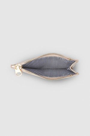 Internal Features: 6 Cardholders, 2 Note Pockets, 1 Zip Coin Pocket Internal Lining: 100% Recycled Black and White Stripe Lining Closure: Secure Zip Body Material: Polyurethane Vegan Leather Hardware: Light Gold Dimensions: W4.5 x H3.25″