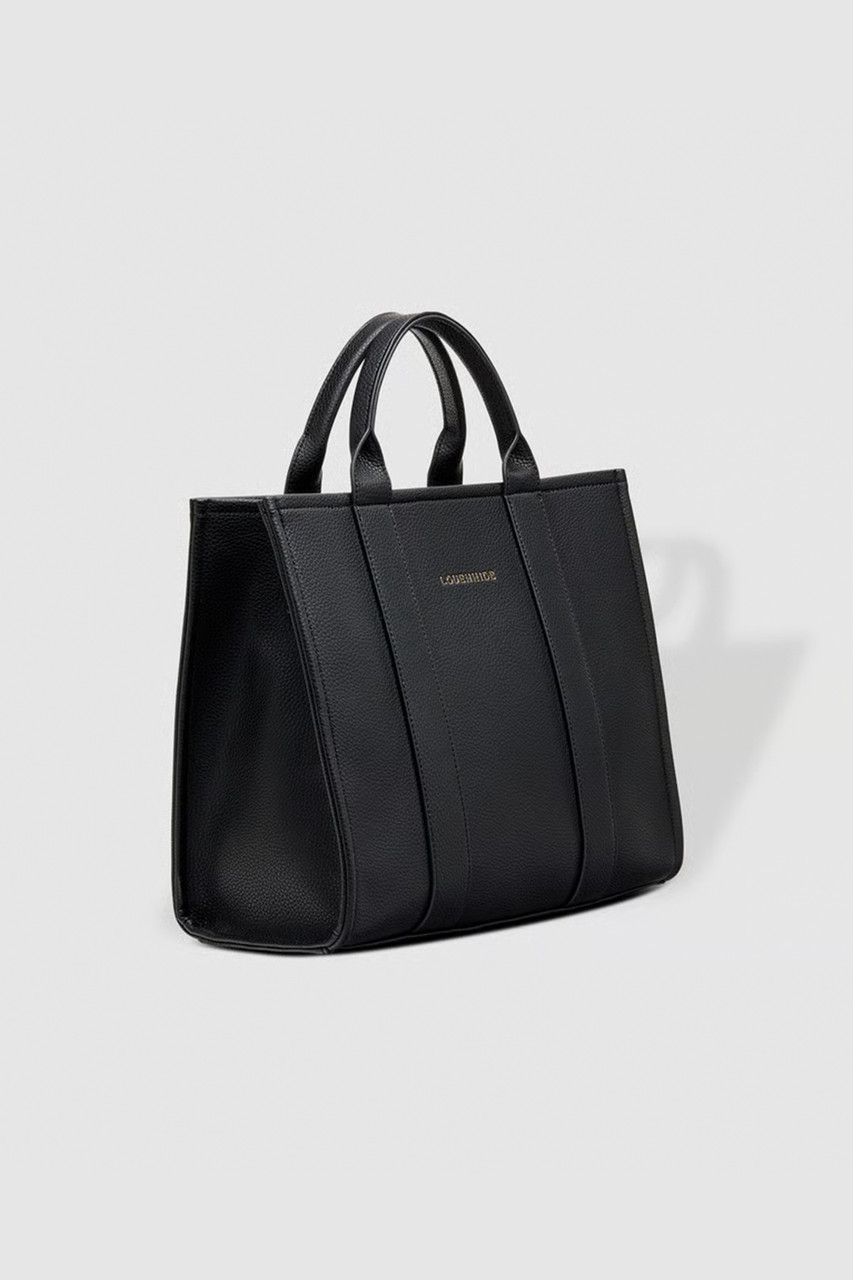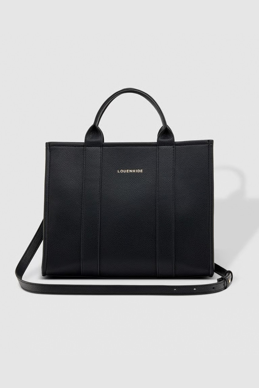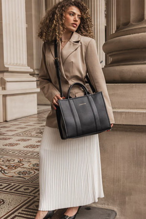 The Louenhide Manhattan Tote Bag is a minimalist style work bag in a range of classic and statement colourways. With beautiful top stitched exterior trims and statement handles, this functional bag has ample interior space for all your office essentials. Easily take this tote bag from day to night with the smart polyurethane vegan exterior matched with the colourful contrast nylon lining, this mid-sized tote is great for work or play. This versatile style can be held by the top handles or worn crossbody with the adjustable and detachable strap that can be styled to your liking. Invest in this gorgeous women’s work bag to help you feel confident and stylish in the office. This work tote bag fits up to a 15-inch laptop. By Lounehide.