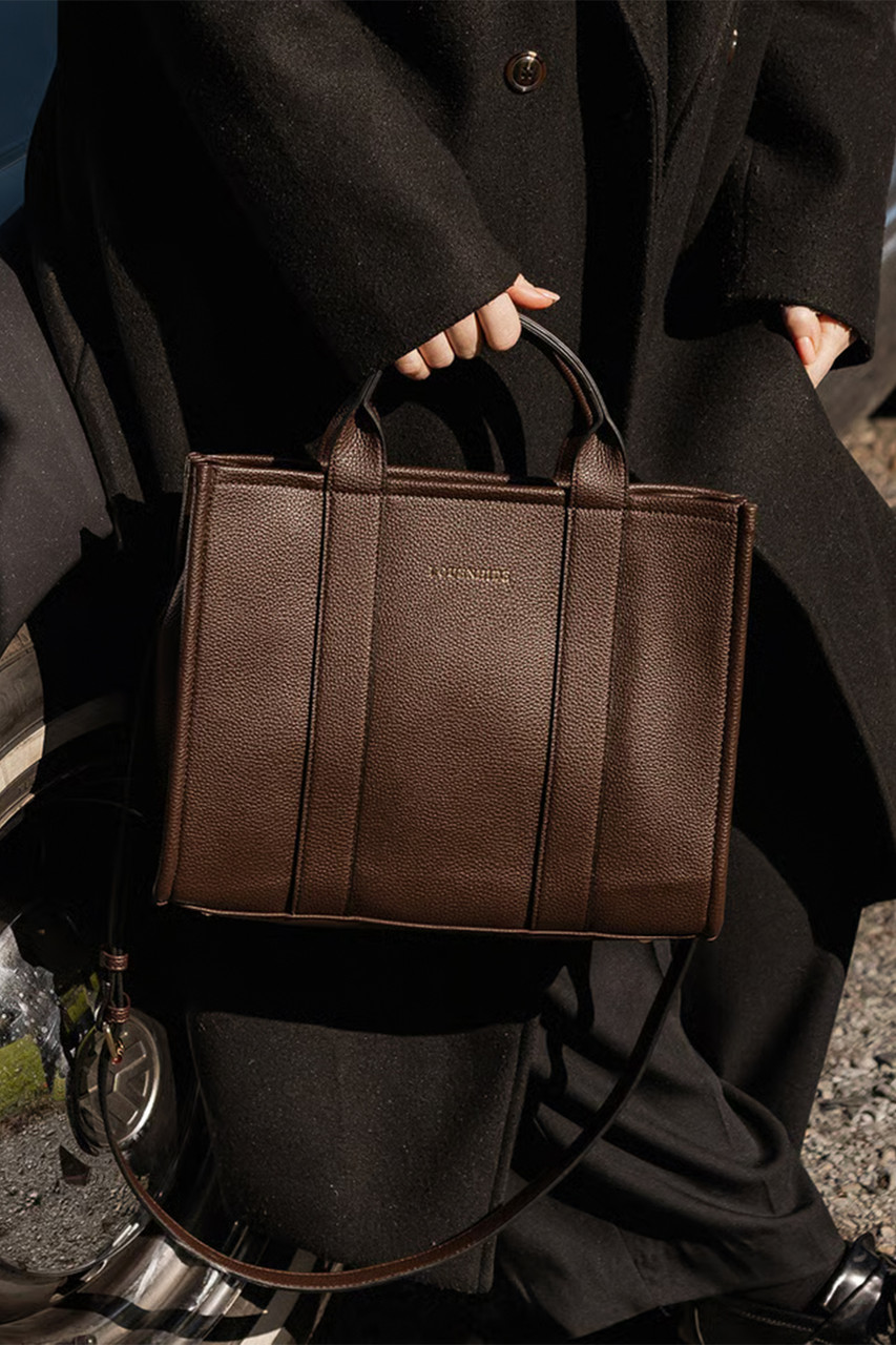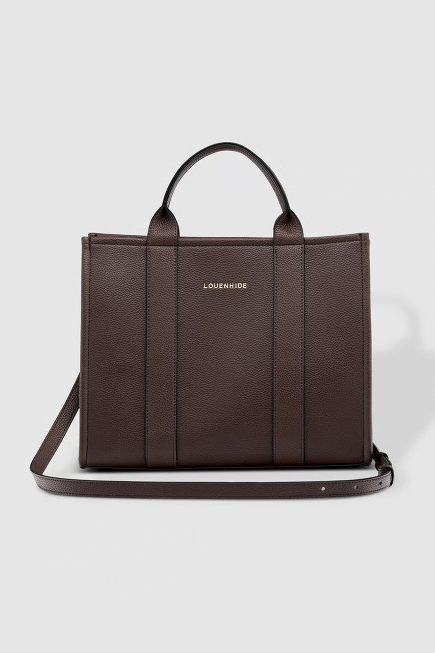 The Louenhide Manhattan Tote Bag is a minimalist style work bag in a range of classic and statement colourways. With beautiful top stitched exterior trims and statement handles, this functional bag has ample interior space for all your office essentials. Easily take this tote bag from day to night with the smart polyurethane vegan exterior matched with the colourful contrast nylon lining, this mid-sized tote is great for work or play. This versatile style can be held by the top handles or worn crossbody with the adjustable and detachable strap that can be styled to your liking. Invest in this gorgeous women’s work bag to help you feel confident and stylish in the office. This work tote bag fits up to a 15-inch laptop. By Lounehide.