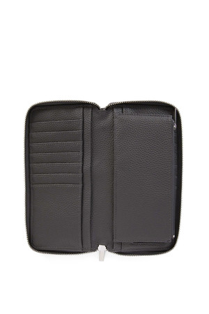Interior: 14 card slots, 2 bill compartments, zipper coin pocket.