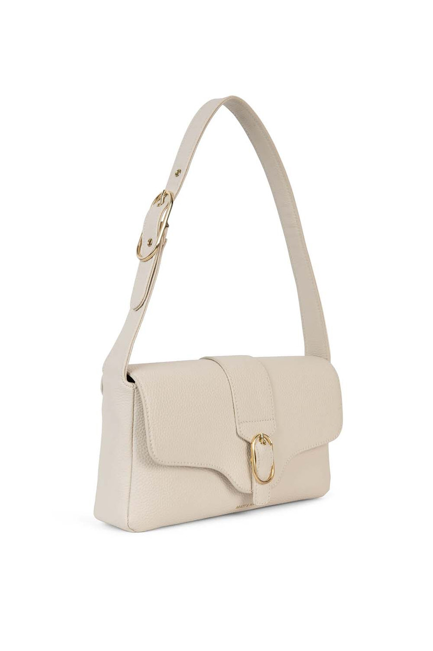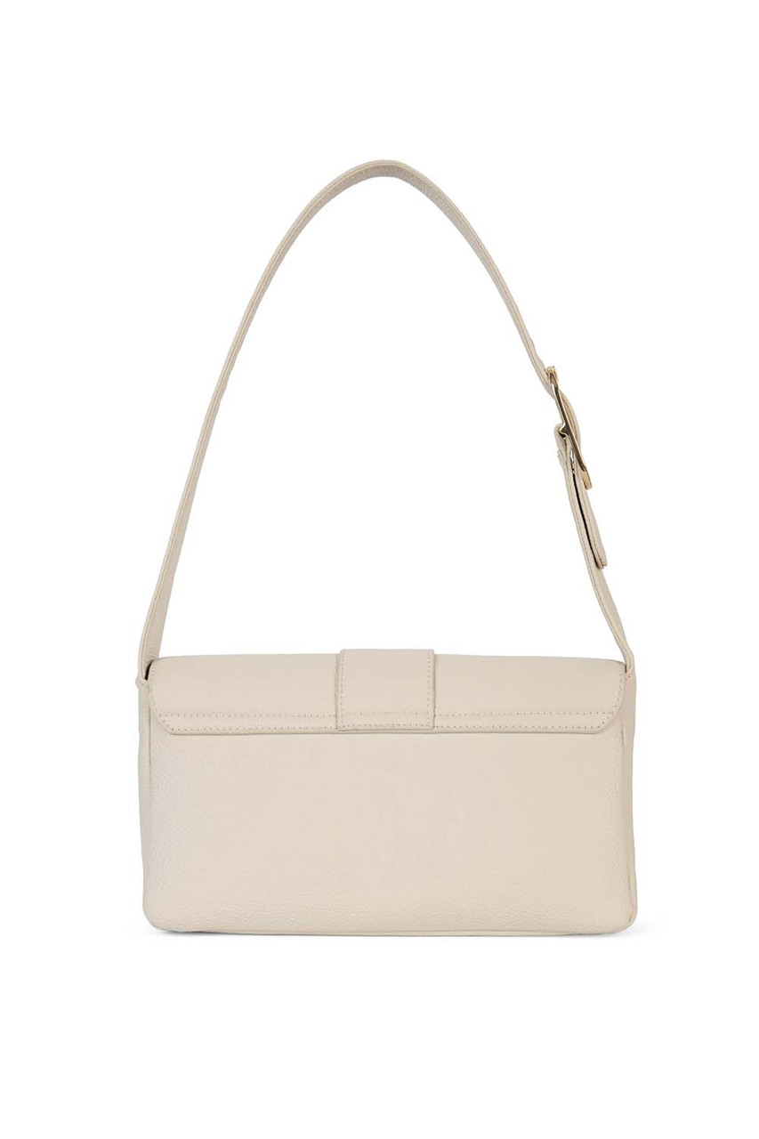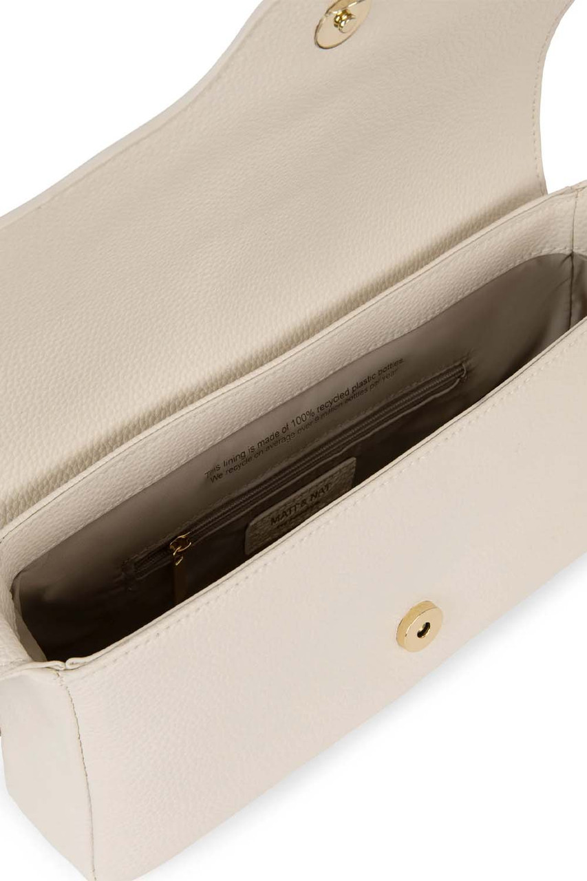 Shoulder bag with a flap closure, decorative buckle detail on the flap, and an adjustable strap. By Matt & Nat.