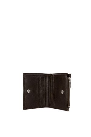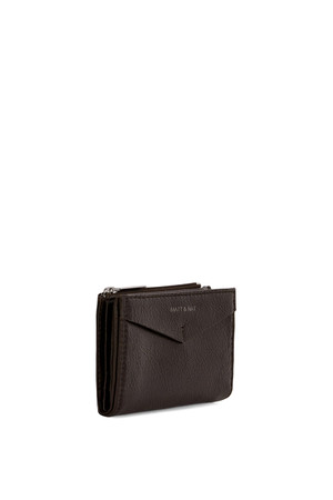 Folded wallet with snap closure, zippered coin pocket, and card slots inside. By Matt & Nat.