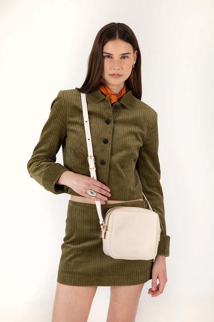 A double-compartment crossbody bag with zippered closures and an adjustable strap. By Matt & Nat.