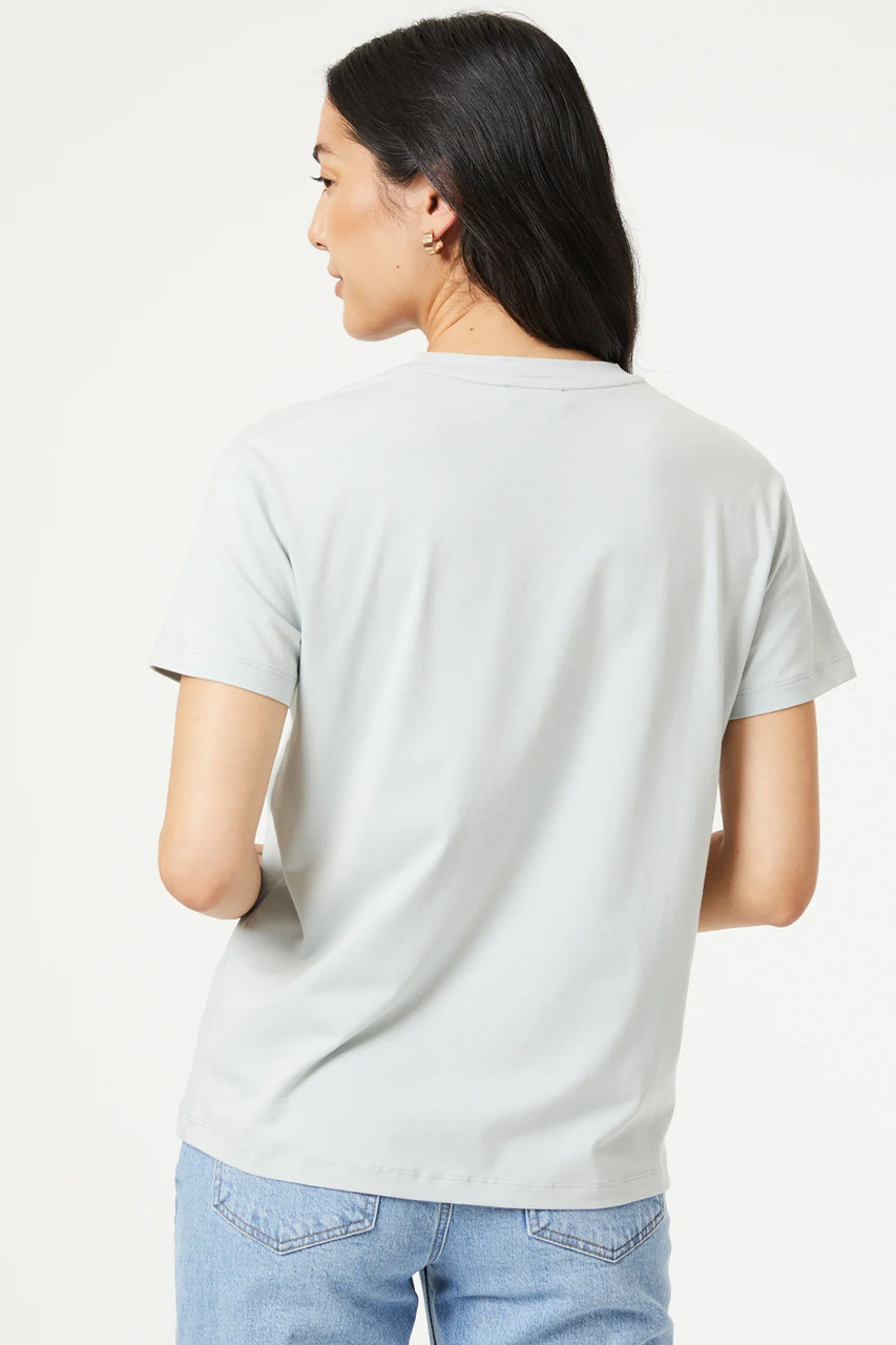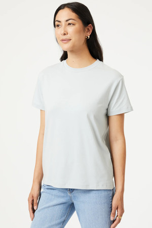 This women’s T-shirt is crafted from organic cotton and features a beautiful naturally dyed sage hue. Its sustainable manufacturing process ensures a soft touch and environmentally-friendly construction, making it the perfect basic tee for daily wear. By Mavi.