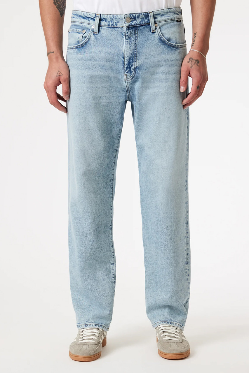 In Bleached Classic Blue Regular Rise, Relaxed Straight Leg 77% Cotton, 22% Tencel™, 1% Elastane Fits True to Size