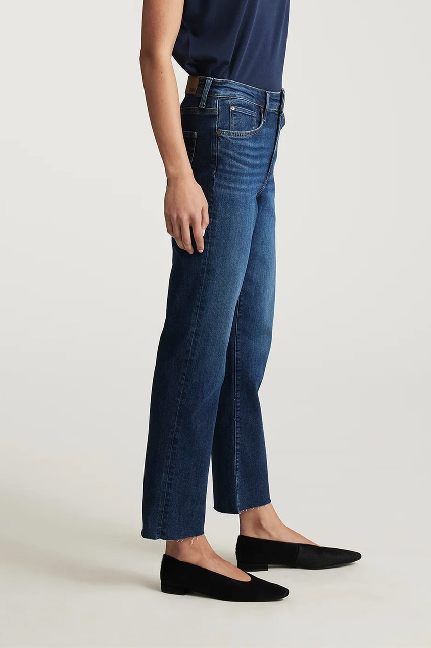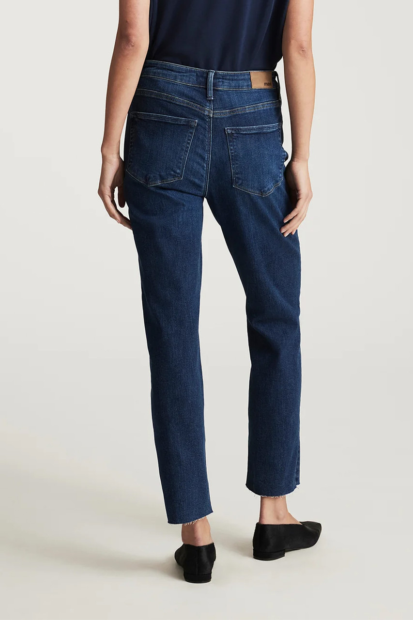 New York offers a more streamlined take on the straight leg, featuring a slightly narrower fit through the leg. The effortless style has a flattering high rise and cropped length. This pair comes in a classic dark wash with whiskering and a perfectly worn-in finish. By Mavi.