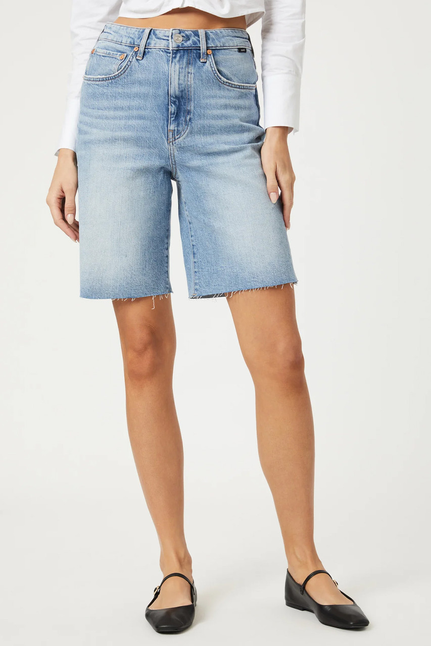 Selina is our bermuda short that captures the casual-cool essence of this classic style. A roomy fit, high rise, and longer inseam bring the comfort, while the raw hem adds a retro edge. By Mavi.