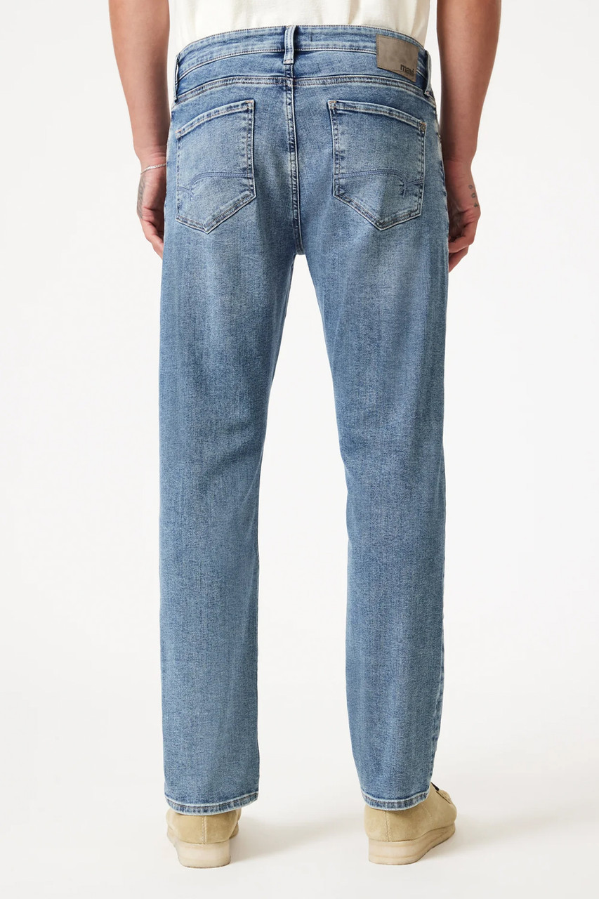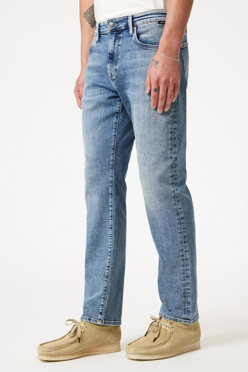 Designed with a classic straight leg fit in our signature Williamsburg fabrication, a lightweight, modern fabric with the look and feel of original denim, this pair is finished in a vintage-inspired mid blue faded wash. By Mavi.