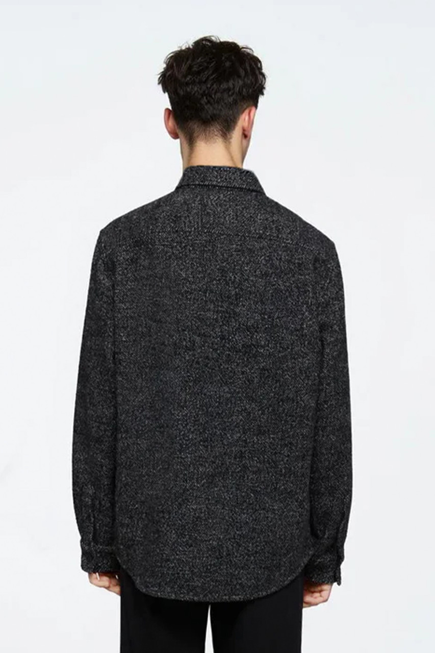 A contemporary overshirt that merges classic tailoring with modern functionality. Crafted from a durable blend of 75% polyester and 25% wool, offering warmth and breathability. Designed with a relaxed fit, classic collar, and button closure, making it ideal as a light jacket or an extra layer over a shirt. By Minimum.