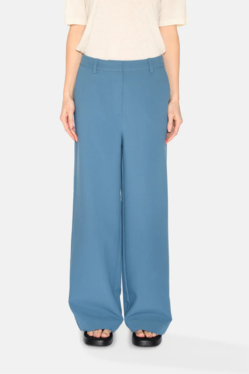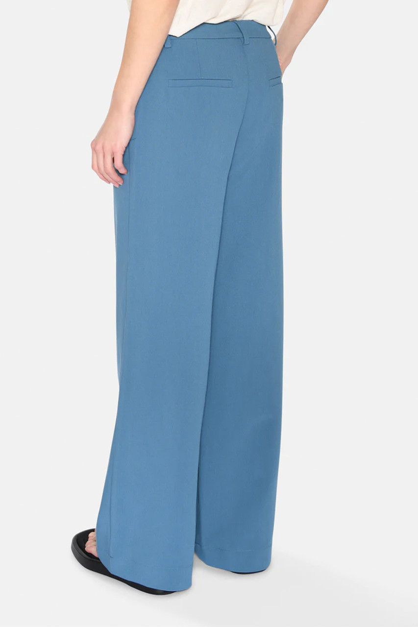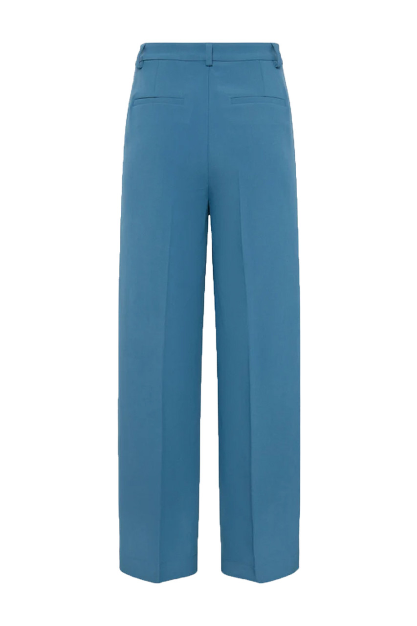 Libra is a pair of classic pants crafted from 79% recycled polyester, 17% viscose and 4% elastane. The pants have a regular waist, a simple wide fit with two slanted side pockets and two welt pockets at back. By Minimum.