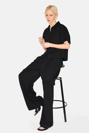 In Black 50% Viscose, 35% Linen, 15% Cotton Fits True to Size