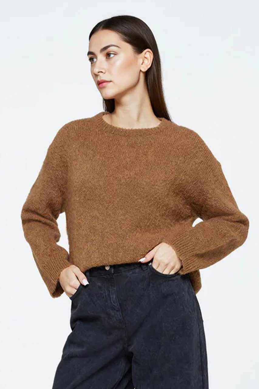 The Sasha Knit redefines everyday comfort. Made from soft Merino wool, this jumper blends relaxed fit with subtle texture for a look that feels effortless yet thoughtful. The warm Cashew tone makes it a versatile piece that works perfectly for layering or wearing on its own. A modern essential for your wardrobe. By Minimum.Â