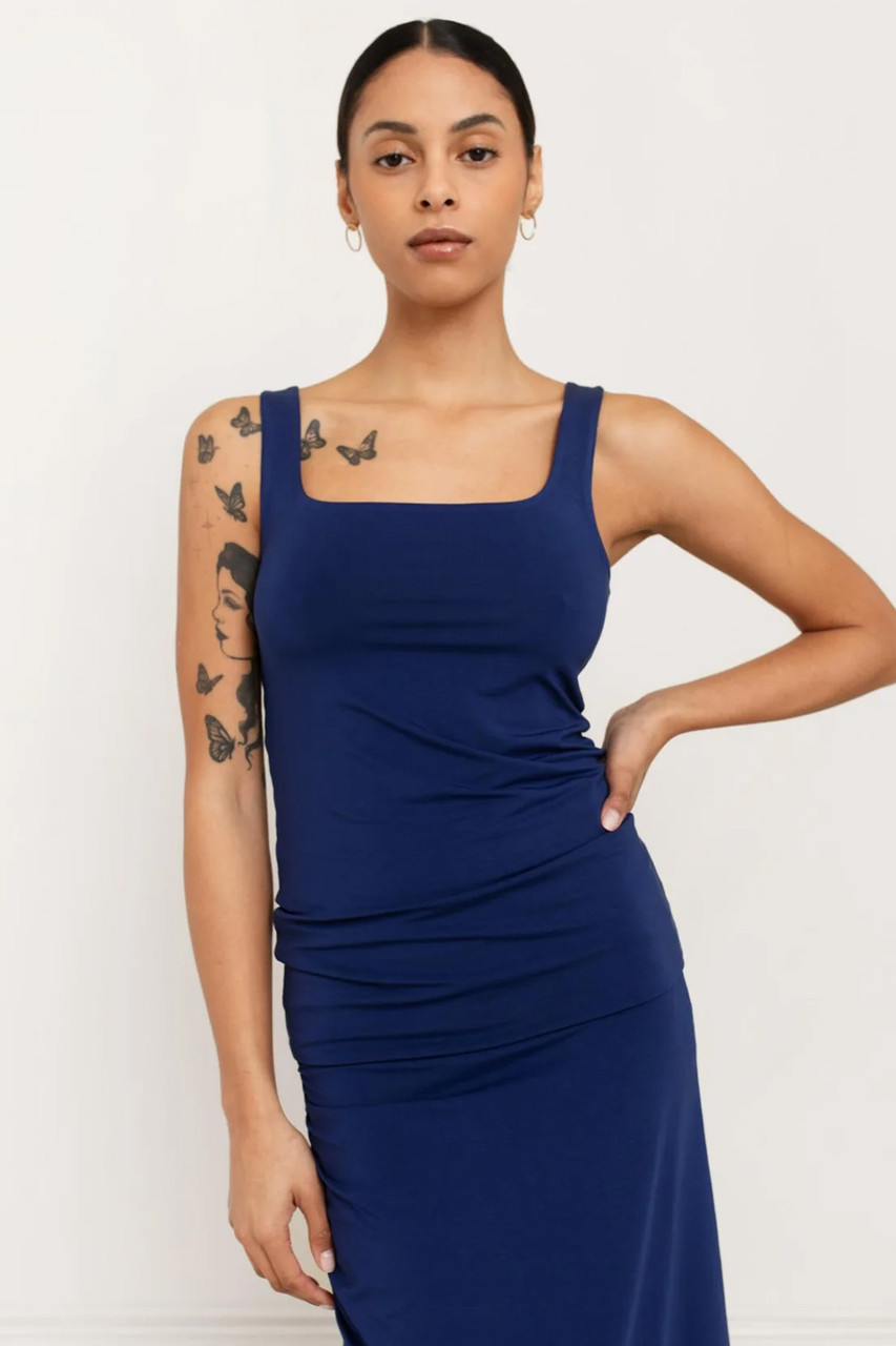 Thanks to its double-layered design, you can skip the bra if you prefer and still enjoy the support of a tank that truly does it all. Wear it as is for a sleek, laid-back vibe or flip it around for a higher neckline when extra coverage is what you’re after. With its minimalist design and endless styling options, the Alina Tank is your ultimate go-to for comfort and effortless style. By Paper Label.Â