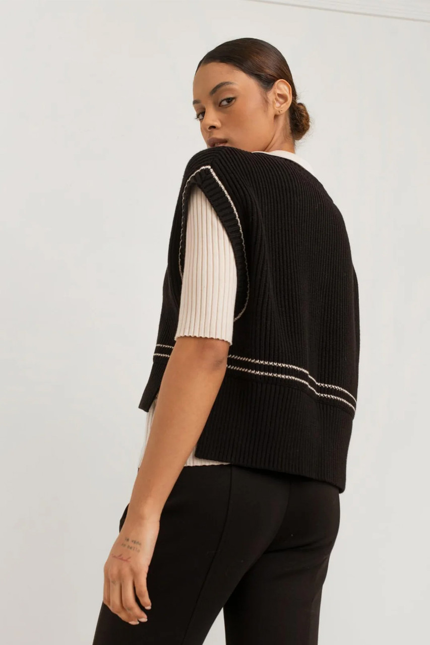 Refined texture. A soft knit vest that adds depth and dimension to any look. Layer the Ash over a long sleeve for transitional ease or wear solo for a clean, minimalist outfit. By Paper Label.