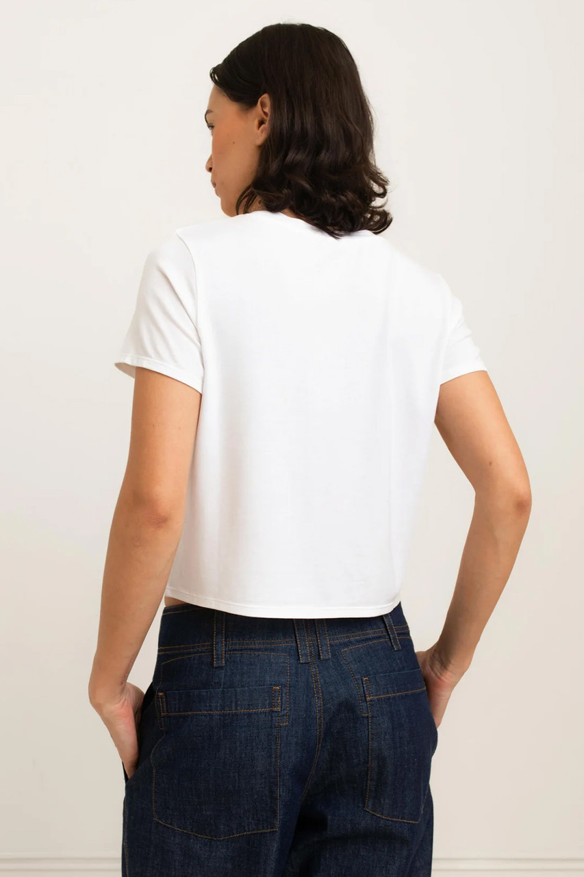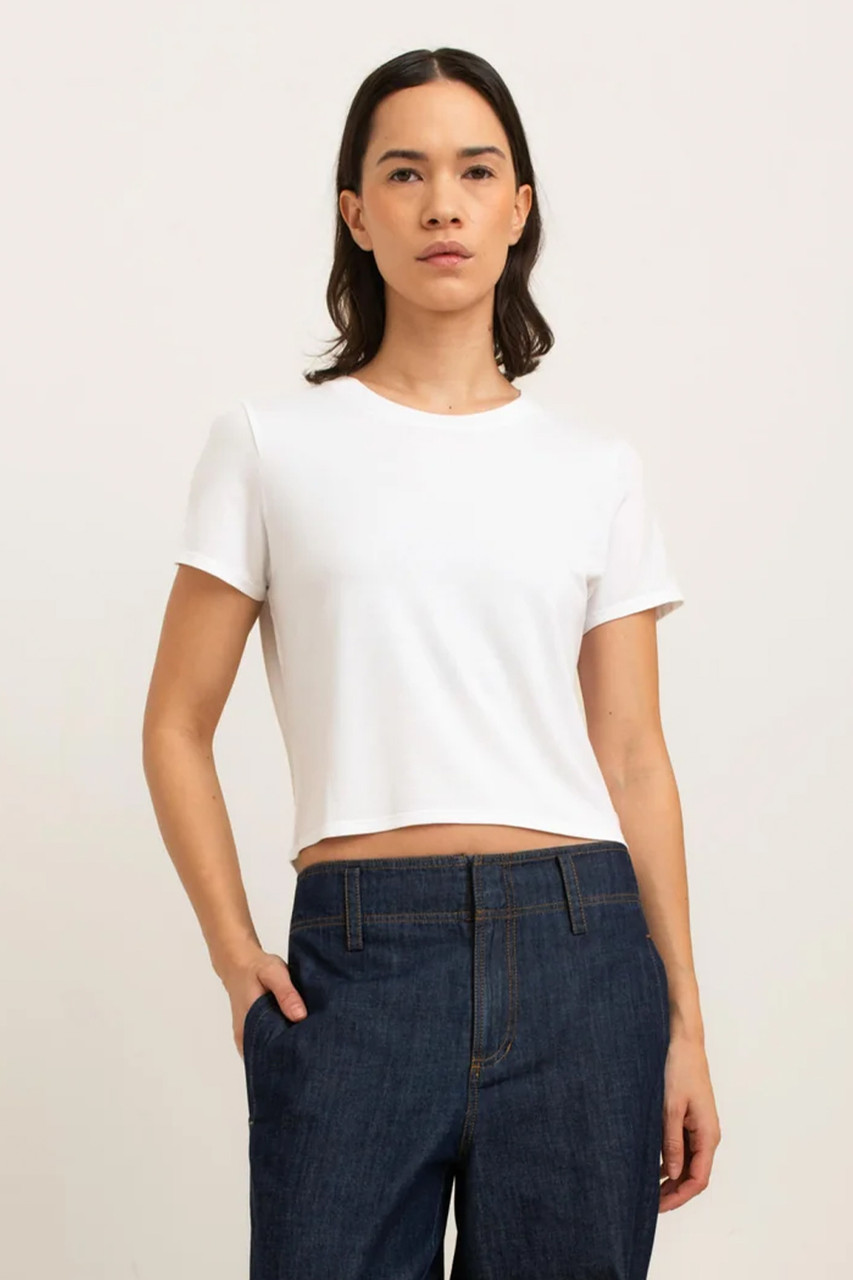 Everyone needs THE tee, and your hunt ends here with the Cassie Tee. Pair this classic, slim-fit top with your favourite denim jeans for an effortless outfit or lounge at home – your choice. The Cassie Tee is the perfect cropped length that hits the spot. By Paper Label.Â