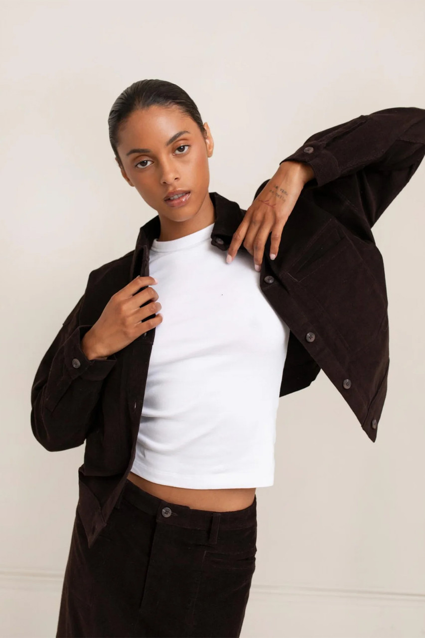 Your everyday jacket. A classic workwear silhouette reimagined in a soft corduroy blend. The Sefina Jacket is slightly oversized and fully versatile—layer it over a hoodie or a sweater. Functional and timeless. By Paper Label.