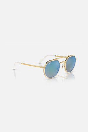 Ray-Ban RB3765 sunglasses feature an irregular gold metal frame with blue gradient-mirror lenses. The polished gold metal adds a touch of luxury to the overall design, making these sunglasses a stylish choice for any occasion. By Ray-Ban.