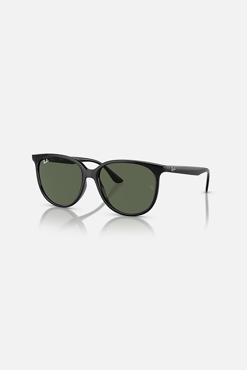 Ray-Ban RB4378 Sunglasses are a classic silhouette reinvented with a modern twist. The frames, with their classic dark green lenses, are designed for women who are not afraid to stand out from the crowd. The black frame and temple, with polished finish, complete this stylish look. By Ray-Ban.