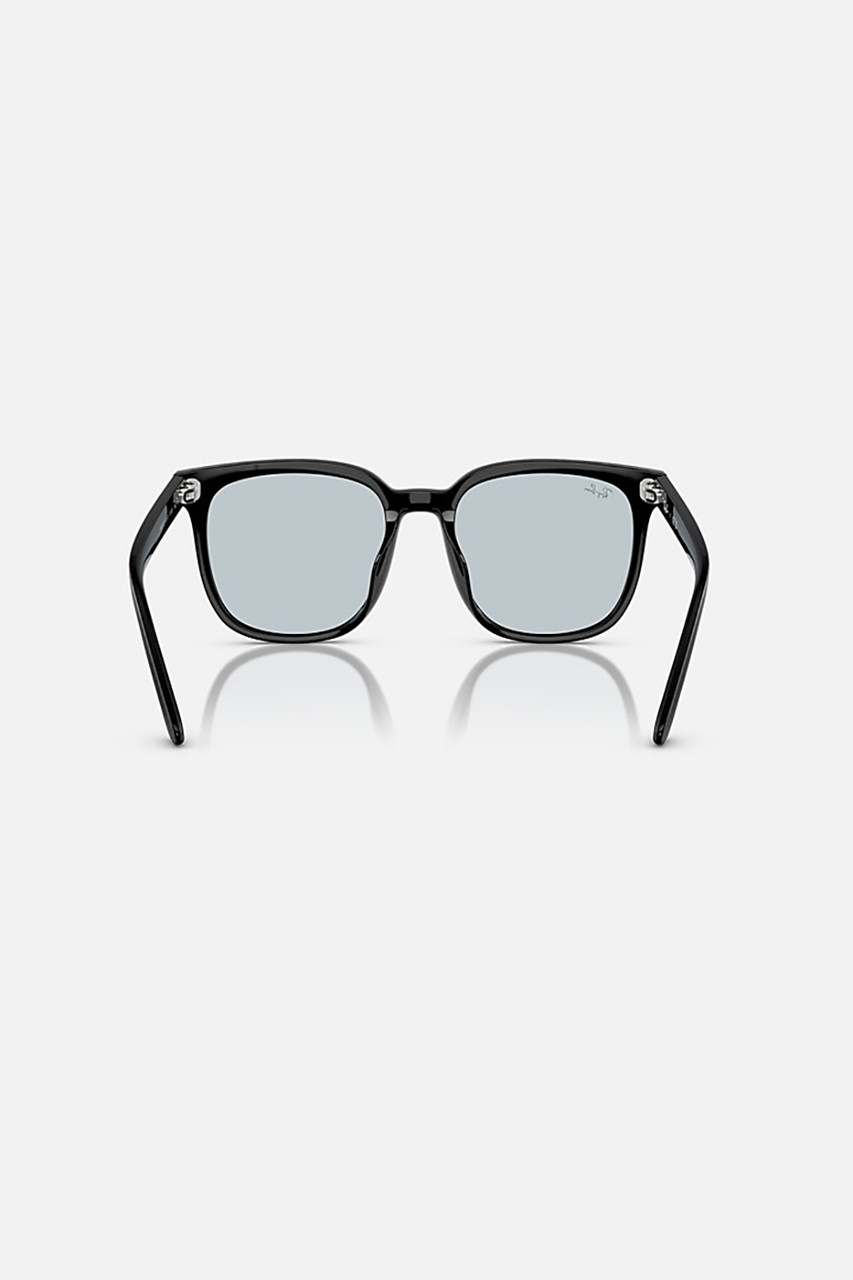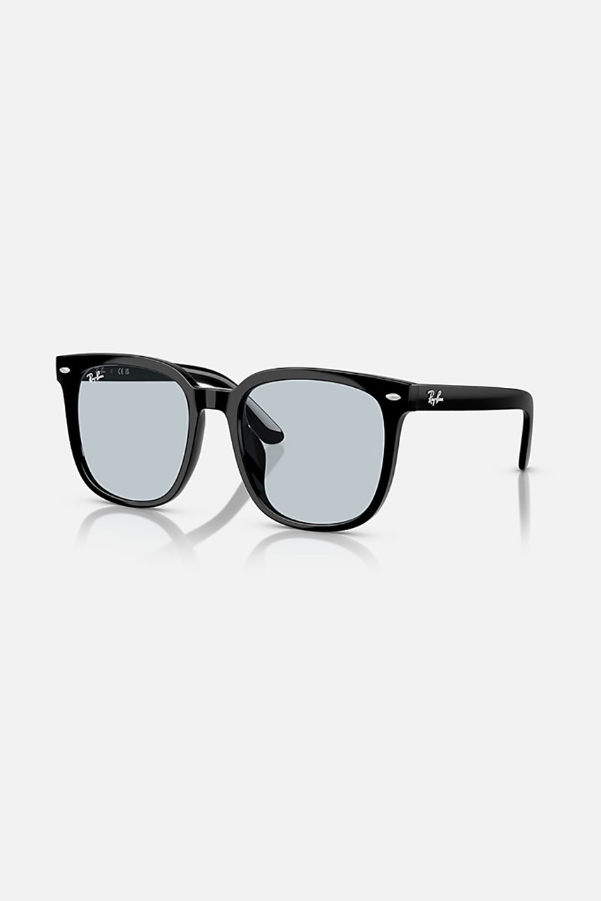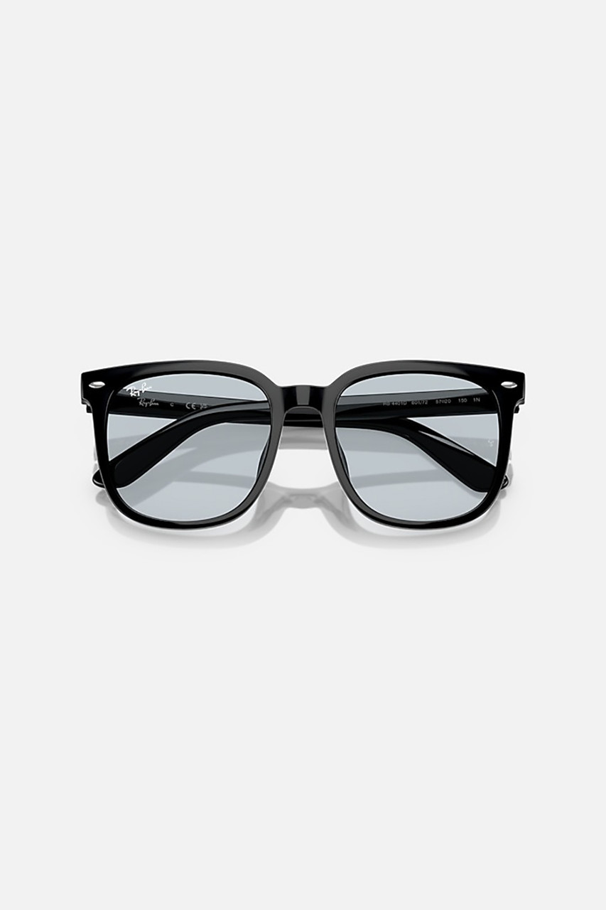 Ray-Ban RB4401D features a square shape with a polished black frame and light blue lenses. The solid color treatment adds to the sleek and modern look of these shades. Perfect for adding a stylish edge to any outfit, these sunglasses are sure to turn heads wherever you go. By Ray-Ban.