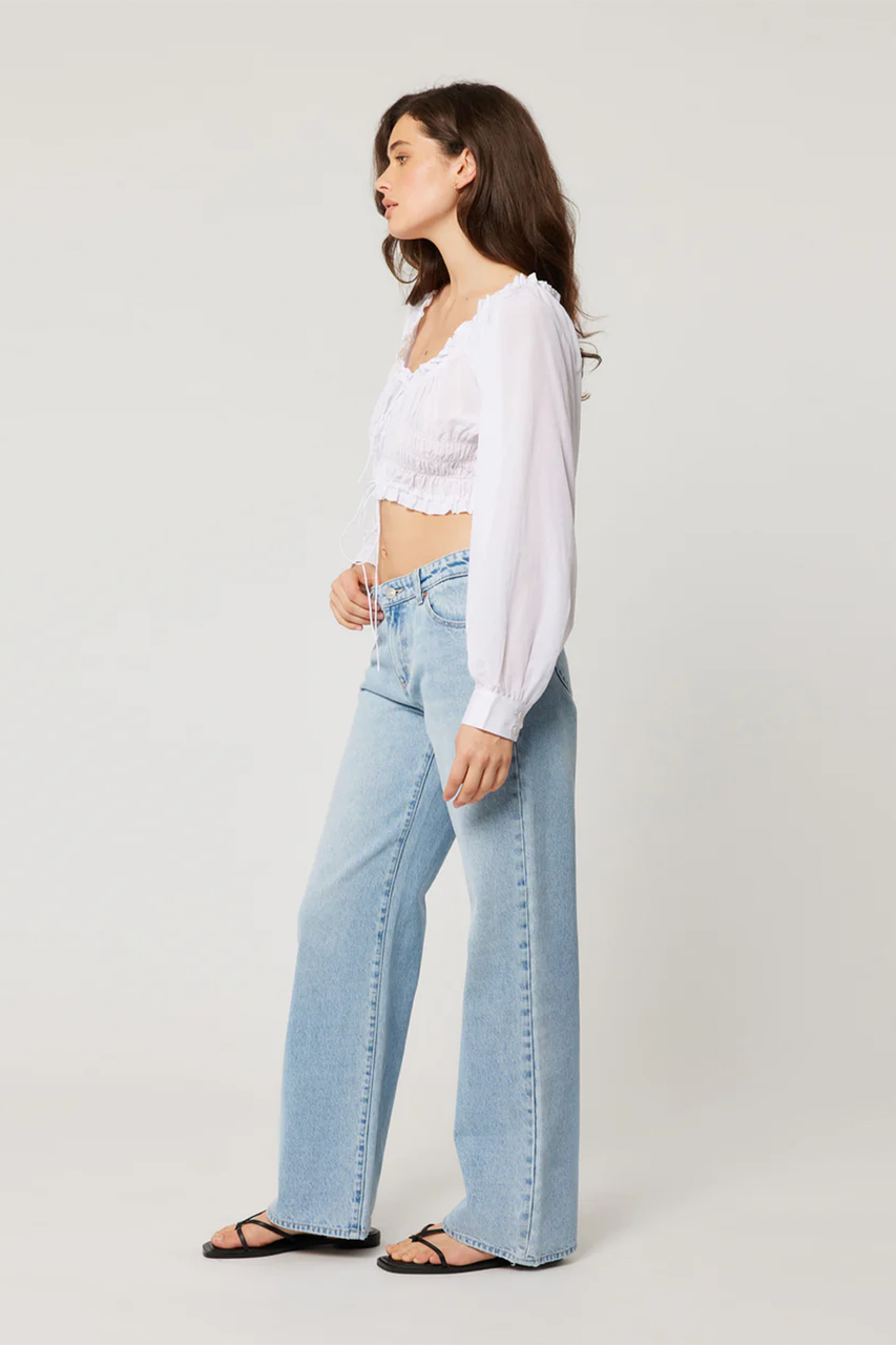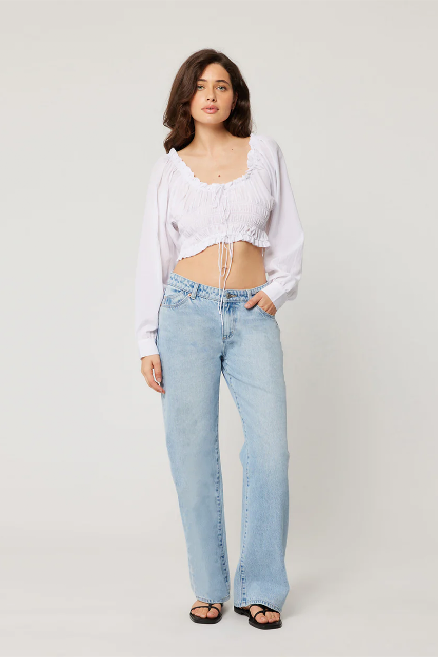 Low rise fitted jean with relaxed straight leg. By Rolla’s.