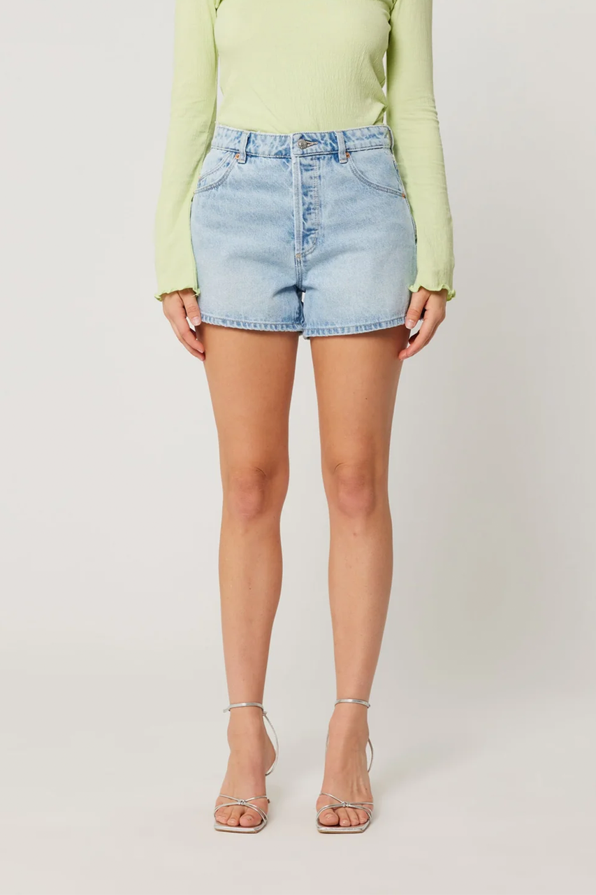 Classic shorts that feature a flattering high-rise fit, light blue wash, five-pocket design, full button fly, and crafted from high-quality denim offering durability and comfort. Perfect for casual days out or beach trips, these shorts are a must-have staple for any wardrobe. By Rolla’s.