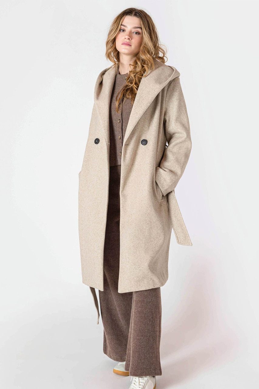 Wrap yourself in cozy charm with the Room 34 Belted Hooded Coat. This long, belted coat features a playful hood and a functional front button closure, making it the perfect companion for cooler days. Stylish yet practical, it keeps you snug while adding a fun twist to your outerwear game. By Room 34.Â