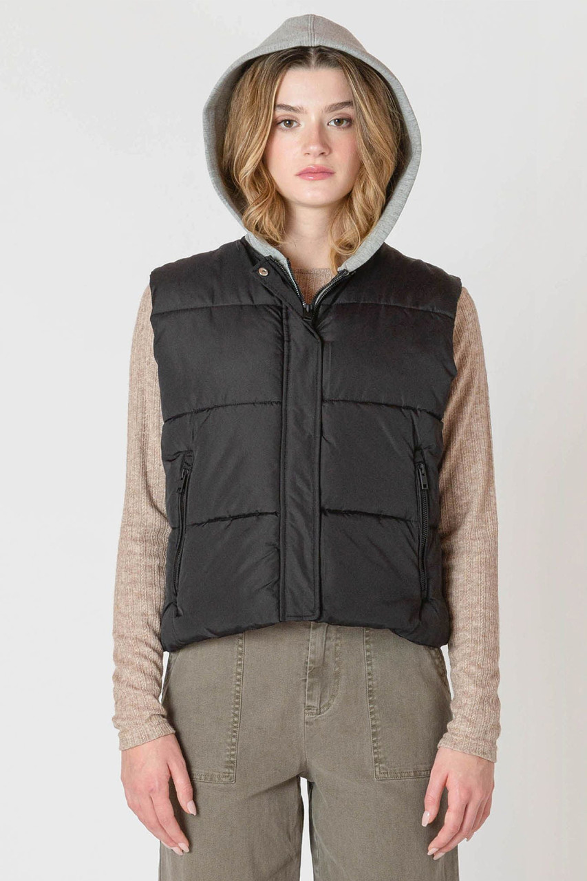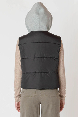 Elevate your fall wardrobe with the Room 34 Short Hooded Puffer Vest. Featuring a quilted shell for warmth and a fleece-lined hood for added comfort, this vest is ideal for effortless layering on crisp days. Its refined design combines functionality with subtle sophistication, making it a versatile piece for transitional weather. By Room 34.Â