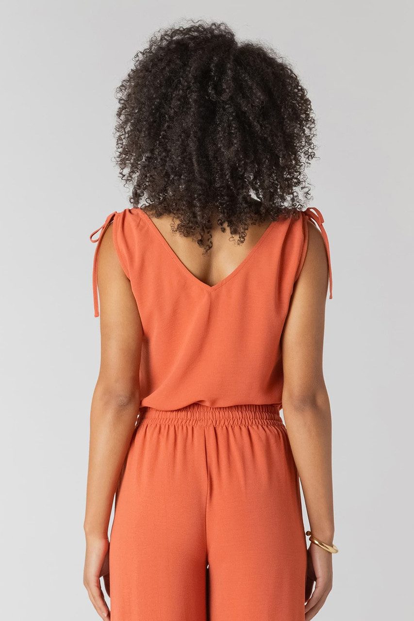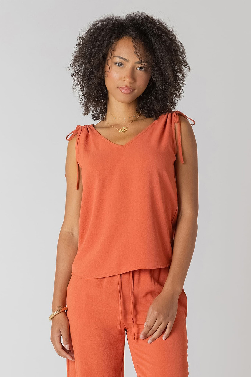 Effortless summer style meets vibrant flair with this sleeveless V-neck top. Delicate shoulder ties add a flirty, adjustable fit while the relaxed silhouette keeps you cool and comfortable. Perfect for layering or wearing solo, this piece brings an instant pop of colour to your warm-weather wardrobe. Dress it up for brunch or down for casual days—versatility that actually works. By Room 34.Â