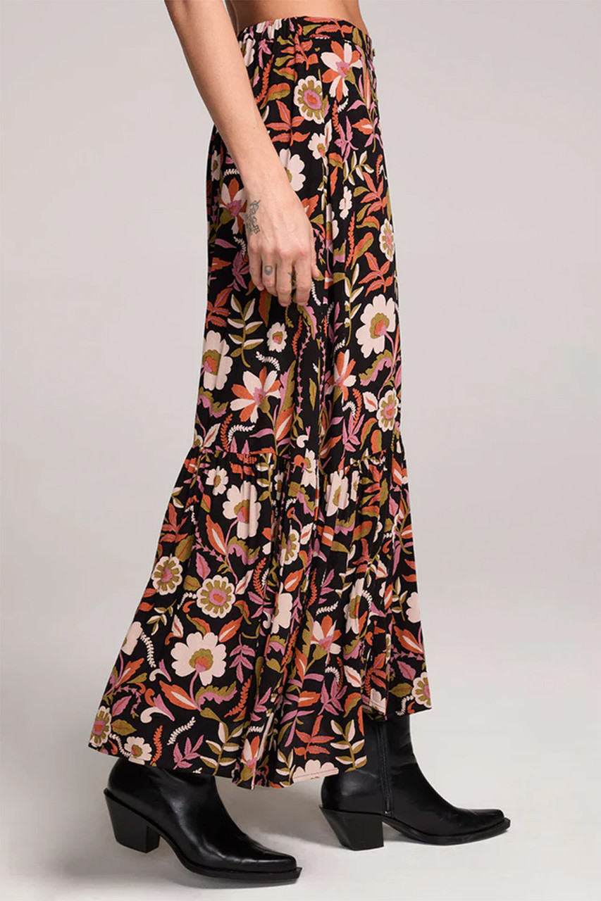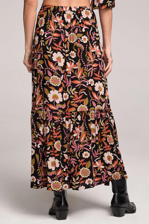 The Carli Maxi Skirt features a full, tiered design that flares into a dramatic wide bell silhouette. By Saltwater Luxe.