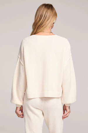The Ellyn Cardigan Sweater features elegant bow closures and roomy blouson sleeves, offering sophisticated detailing that elevates any outfit. By Saltwater Luxe.Â