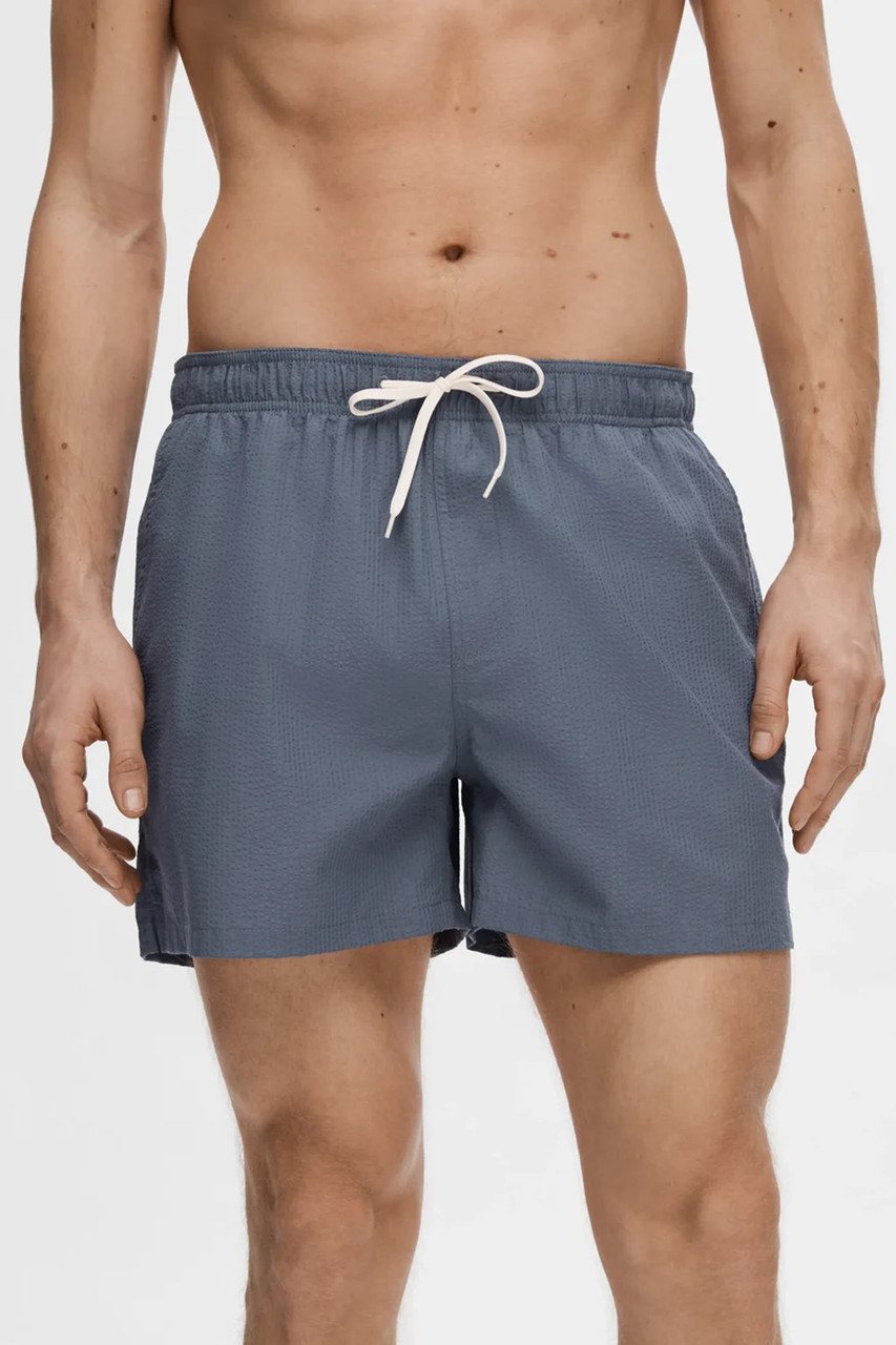 These Selected Homme swim shorts are perfect for a day at the beach or pool. They are made from a comfortable and quick-drying fabric. The shorts have an elastic waistband with a drawstring for a secure fit. They also feature side pockets for added convenience. By Selected.