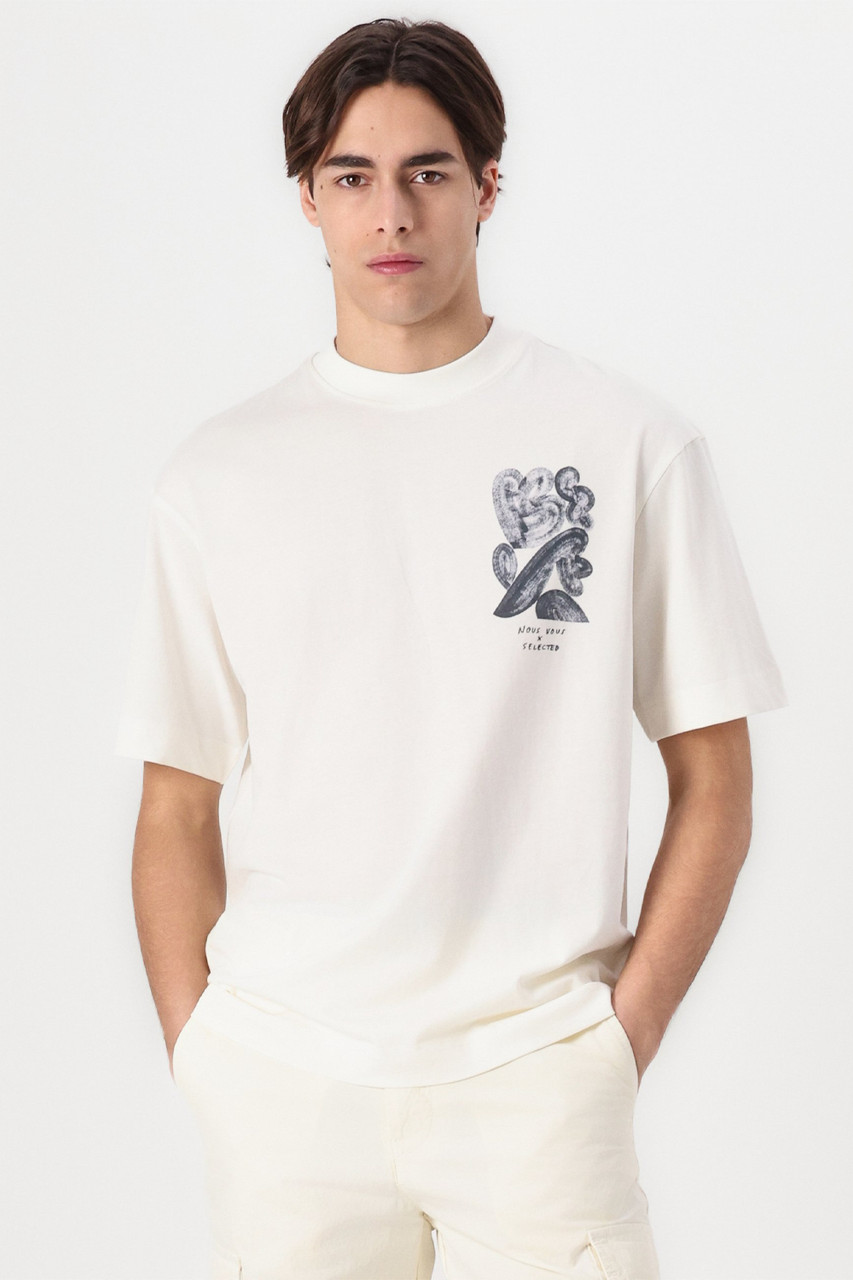 Crafted with organic cotton jersey, the Selected Will O-Neck Graphic Tee is further softened with an enzyme wash for comfort. Custom artwork from Nous Vous Collective adorns the left chest and across the back, making this a perfect upgrade to your everyday t-shirt rotation. By Selected.