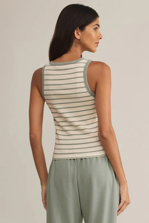 This crewneck tank is soft, sleek, and bra-friendly, perfect for layering or wearing on its own. Featuring classic stripes and contrast color at the neckline and straps, its comfy ribbed fabric and easy fit make it a go-to piece you’ll reach for, season after season. By Z Supply.