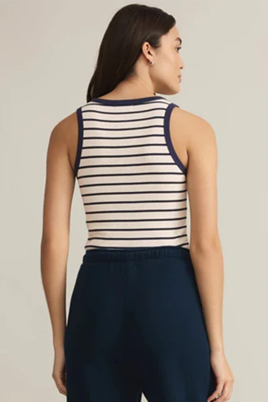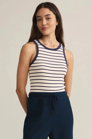 This crewneck tank from is soft, sleek, and bra-friendly, perfect for layering or wearing on its own. Featuring classic stripes and contrast color at the neckline and straps, its comfy ribbed fabric and easy fit make it a go-to piece you’ll reach for, season after season. By Z Supply.