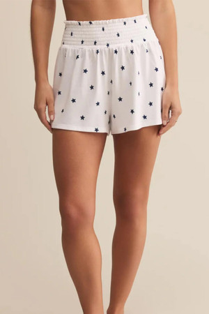 Add a little star power to your everyday essentials with this fitted, semi-sheer tank bra, crafted in our silky jersey knit for soft, lightweight support. A classic scoop neck and wide straps deliver comfort you’ll want to live in. Covered in a playful mini star print, this high-rise short is made from our silky-soft jersey fabric that feels like a dream. The smocked waistband gives it that easy, flattering fit, while the lettuce-edge hem adds a fun little finish. By Z Supply.