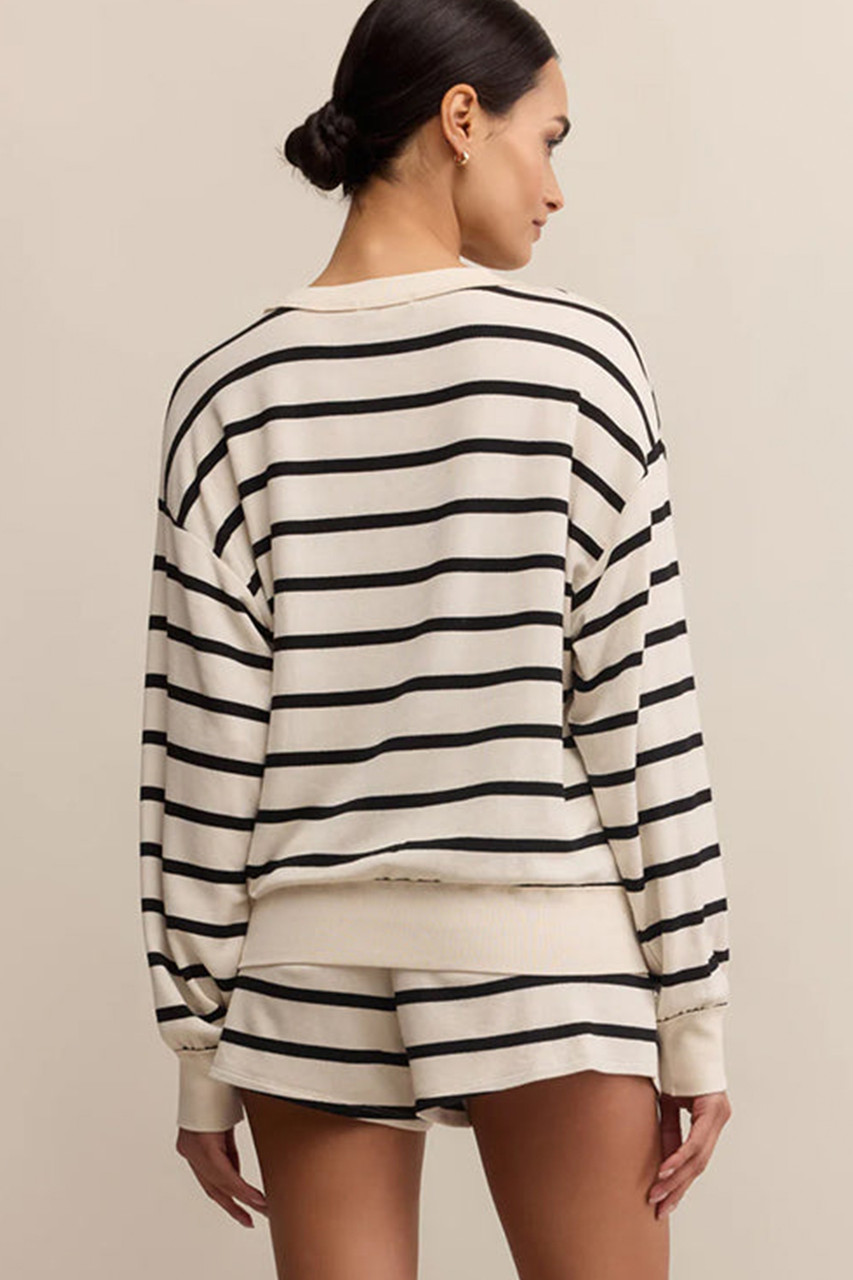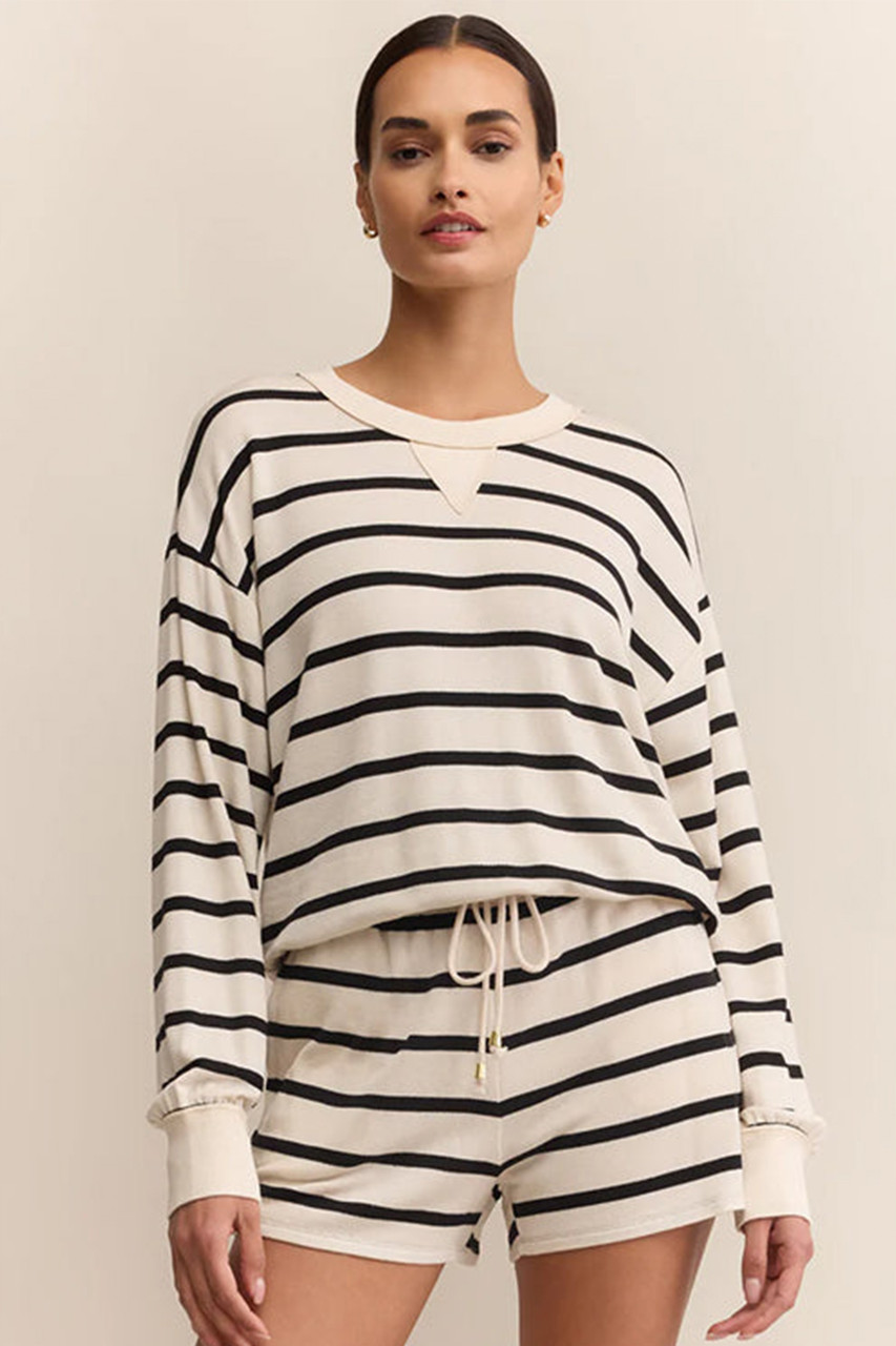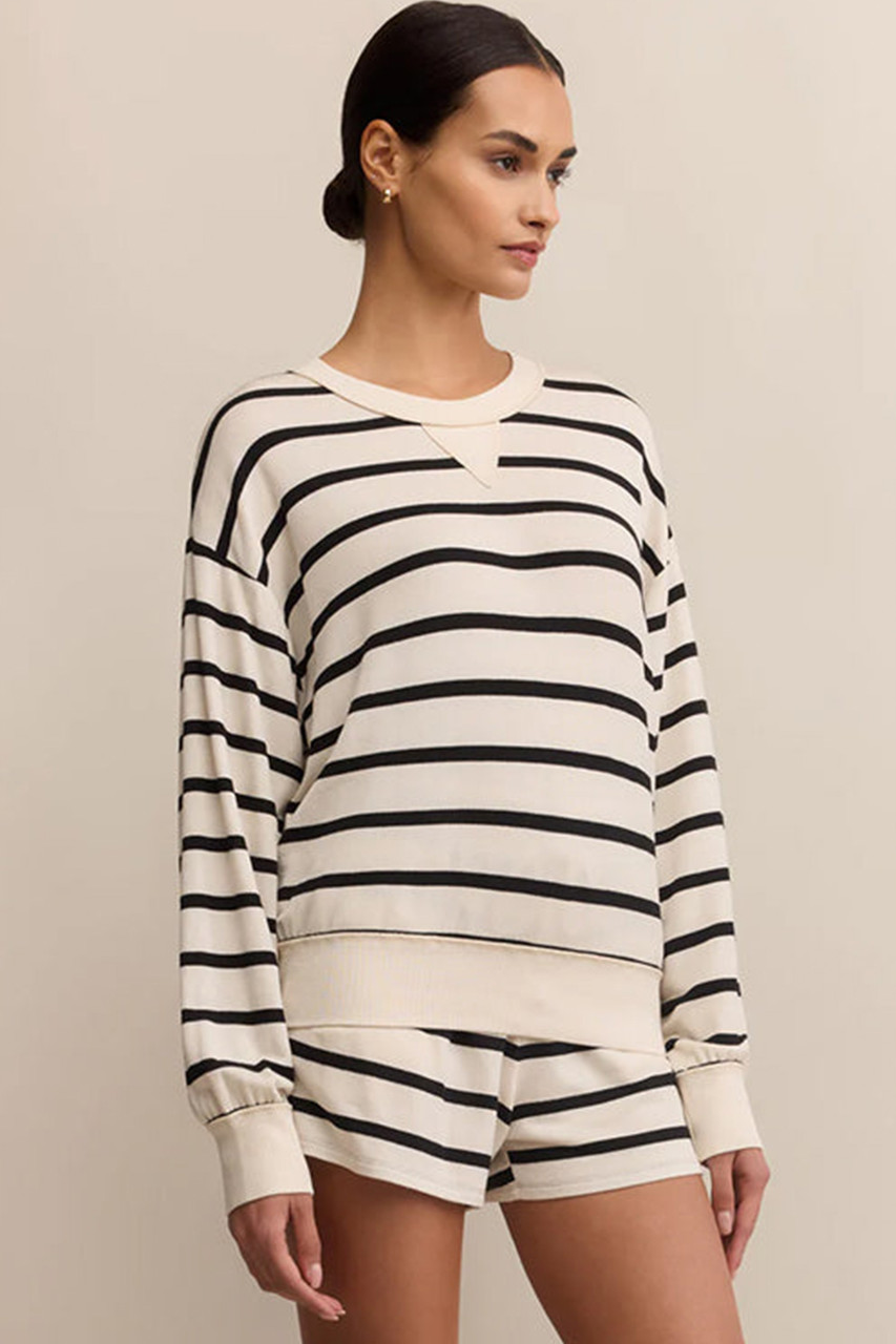 Experience unmatched comfort with the Z Supply Stand Out Striped Modal Sweatshirt. Made from buttery-soft modal fleece, this relaxed crewneck offers cozy warmth and a flattering fit with subtle dropped shoulders and a stylish triangle neck yoke. Its easy stripes add a touch of casual sophistication, making it perfect for everyday wear that stands out effortlessly. By Z Supply.Â